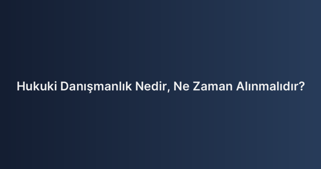 Hukuki danışmanlık ne zaman alınmalıdır?