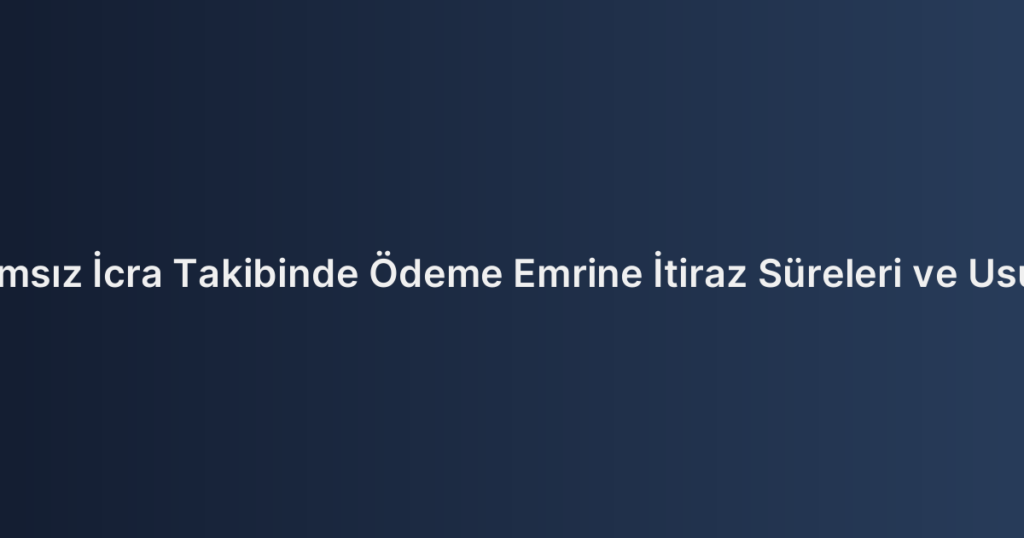 İlamsız İcra Takibinde Ödeme Emrine İtiraz Süreleri ve Usulü