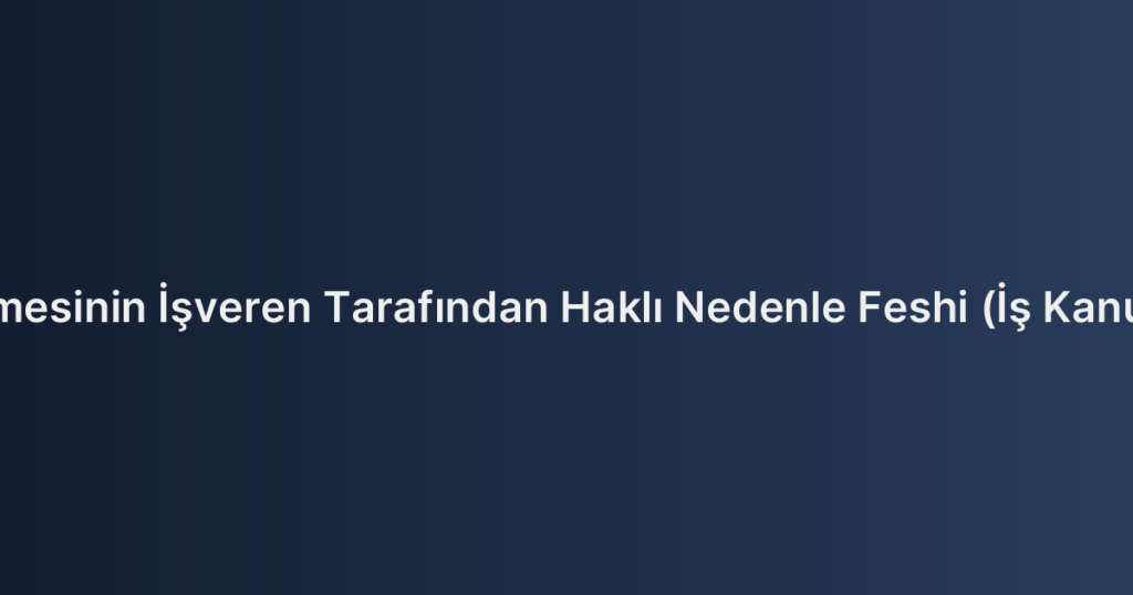 İş Sözleşmesinin İşveren Tarafından Haklı Nedenle Feshi (İş Kanunu m.25)