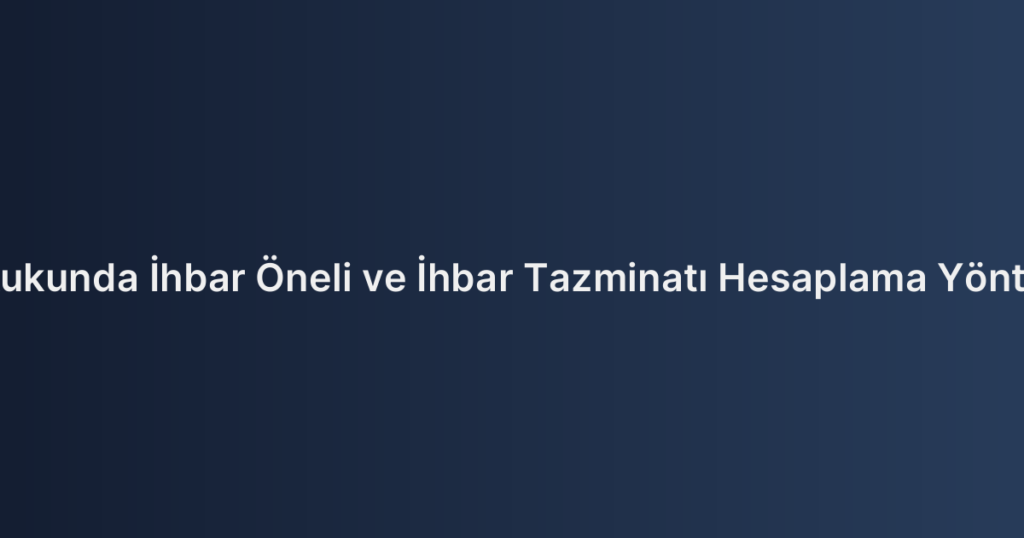 İş Hukukunda İhbar Öneli ve İhbar Tazminatı Hesaplama Yöntemleri, Türk Borçlar Kanunu’nun 17. ve 18. maddeleri uyarınca düzenlenmiştir. İş sözleşmesinin feshinde taraflar arasındaki hak ve yükümlülüklerin belirlenmesi açısından bu hükümler büyük önem taşımaktadır. İhbar süresi, tarafların birbirlerine yapacakları ihbarda bulunma zorunluluğunun sürelerini belirleyerek, iş ilişkisinin sağlıklı bir şekilde sonlandırılmasına imkan tanır.