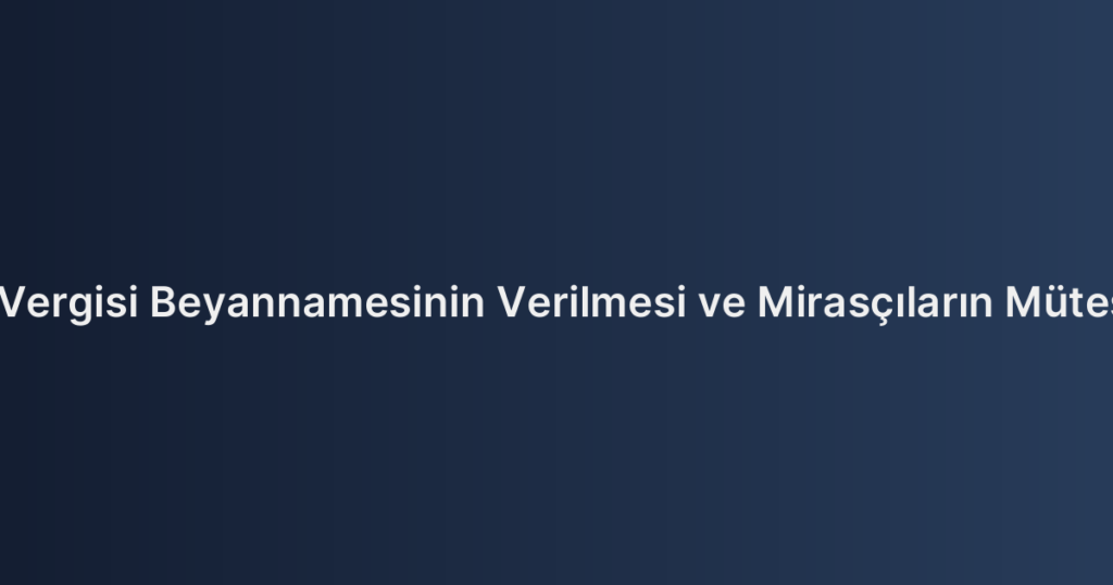 Veraset ve İntikal Vergisi Beyannamesinin Verilmesi ve Mirasçıların Müteselsil Sorumluluğu, Türk Medeni Kanunu’nun 599. maddesi ve 7338 sayılı Veraset ve İntikal Vergisi Kanunu çerçevesinde düzenlenmiştir. İlgili kanunlar uyarınca, mirasçıların, miras bırakanın vefatından itibaren üç ay içinde vergi dairesine beyanda bulunma yükümlülüğü vardır. Bu beyanname, mirasçılar tarafından intikal eden malların değerinin beyan edilmesi ve vergilendirme yükümlülüklerinin belirlenmesi amacı taşıyan önemli bir belgedir.