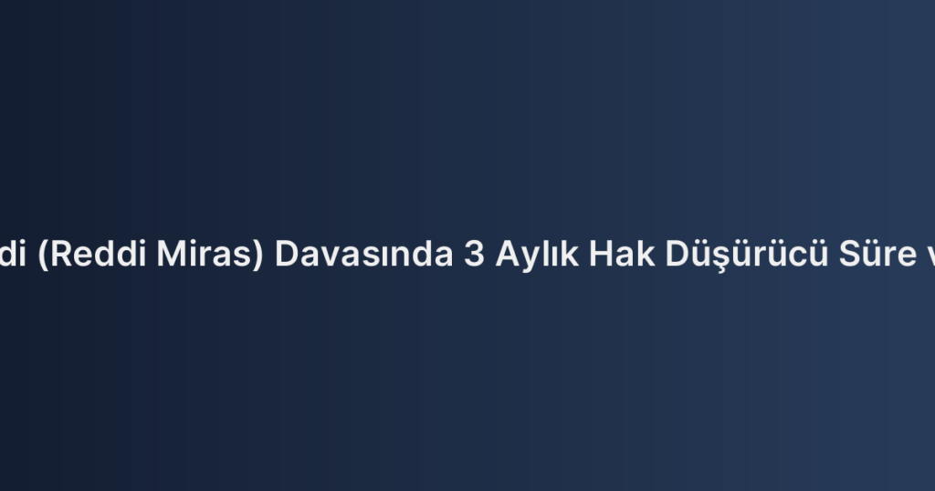 Mirasın Reddi (Reddi Miras) Davasında 3 Aylık Hak Düşürücü Süre ve İstisnaları
