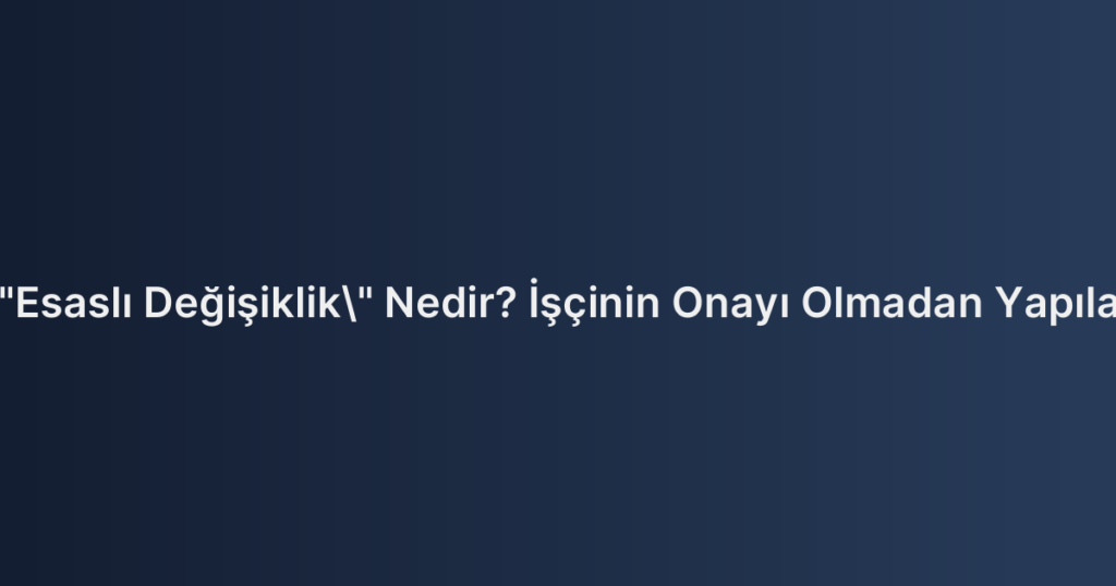 İş sözleşmesinde “esaslı değişiklik” terimi, işçinin çalışma koşullarında köklü değişiklikleri ifade etmektedir. Türk Borçlar Kanunu’nun (TBK) 22. maddesi uyarınca, işverenin iş sözleşmesinde esaslı değişiklikler yapabilmesi için işçinin onayı gerekmektedir. İşçinin rızası olmadan yapılan değişiklikler, iş sözleşmesinin ihlali olarak değerlendirilmekte ve dolayısıyla geçersiz kabul edilmektedir.